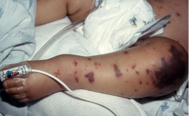 - Xuất hiện ban xuất huyết, hoại tử trên da (dấu hiệu muộn nhưng đặc trưng)
