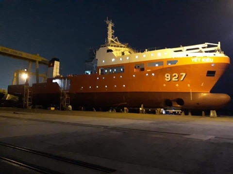 Cụ thể, tàu cứu hộ tàu ngầm số hiệu 927 được mang tên Yết Kiêu, nó đã chính thức được đưa ra khỏi khu nhà xưởng lắp ráp để chuẩn bị hạ thủy trong nay mai, hiện tại sàn đáp trực thăng bố trí phía trước tàu vẫn chưa được lắp đặt do hạn chế về chiều cao của tòa nhà.