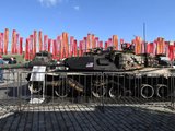 Xác xe tăng M1 Abrams được trưng bày tại Nga. Ảnh NI