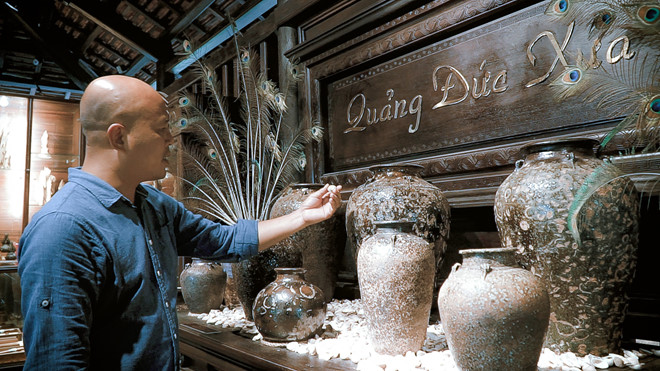 “Tình cờ tôi có làm một chuyên đề về gốm và có dịp đi khắp các làng nghề dọc duyên hải Nam Trung bộ, khi đó tôi mới biết gốm quê hương mình có những điểm đặc biệt mà không nơi nào có. Cũng đất, cũng củi, nhưng các nghệ nhân làng Quảng Đức lại khéo léo kết hợp các nguyên liệu trong vùng cùng phương pháp nung hỏa biến để làm ra một loại gốm với lớp men sò huyết độc bản. Thế nhưng kỹ thuật này lại thất truyền từ hơn nửa thế kỷ trước. Từ đó tôi quyết tâm cùng với các anh chị em trong gia đình sưu tập các hiện vật gốm cổ này trong nhiều năm", anh Cường nhớ lại.