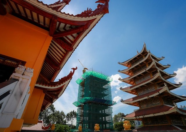 Điểm nhấn của ngôi chùa Việt Nam Quốc Tự (quận 10, TP HCM) là bảo tháp 13 tầng, cao 63 m, sẽ được hoàn thành dịp Tết Nguyên đán 2018.
