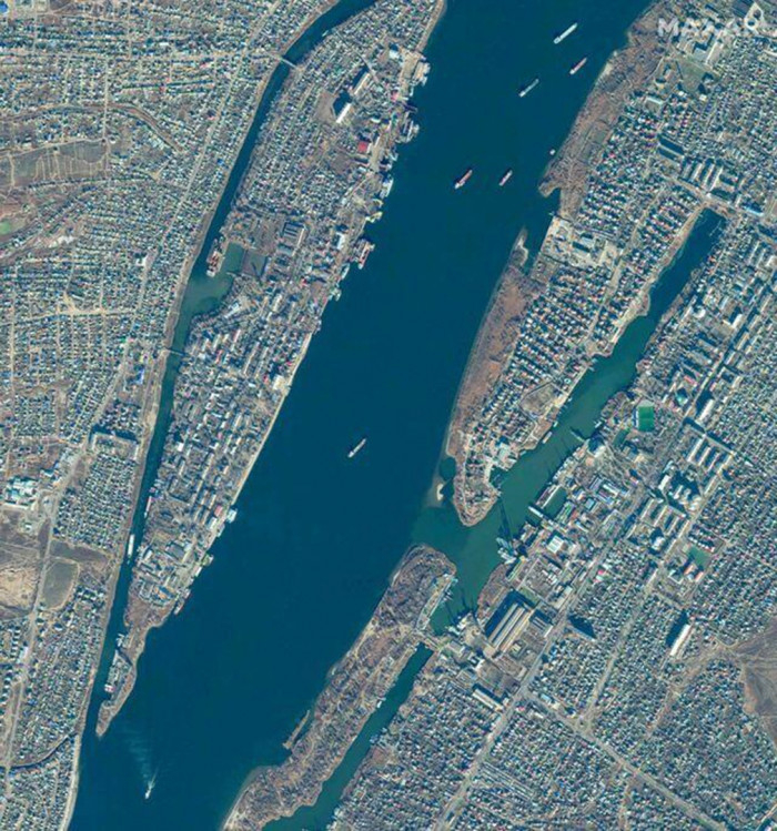 Ảnh vệ tinh chụp cảng Solyanka, thành phố Astrakhan, Nga. Ảnh: Maxar Technologies