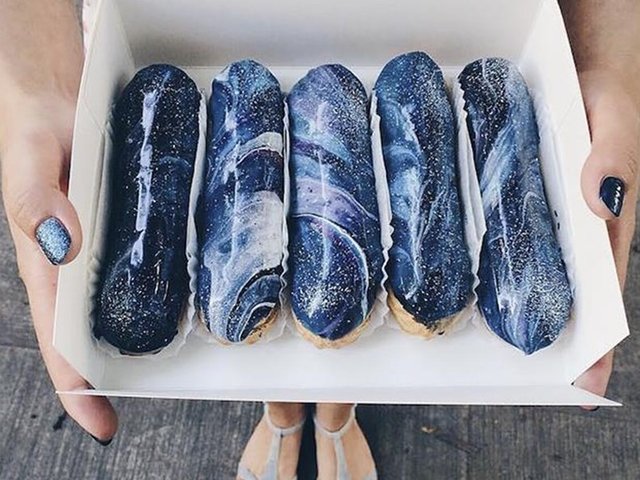 Những chiếc bánh su kem phủ chocolate được trang trí như dải thiên hà với sao băng lấp lánh khiến tất cả những người háo ngọt phải thèm thuồng.