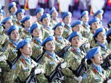 Lực lượng tham gia diễu binh, diễu hành tập trung tại khu vực tập kết. (Ảnh: Hoàng Thọ)