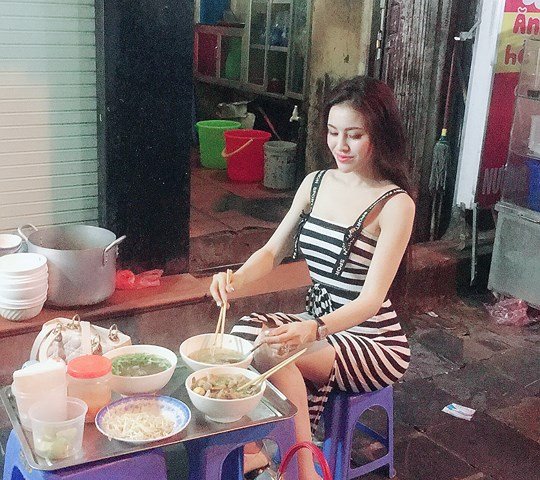 Á hậu Thư Dung khoe ảnh xinh đẹp đi ăn quán vỉa hè
