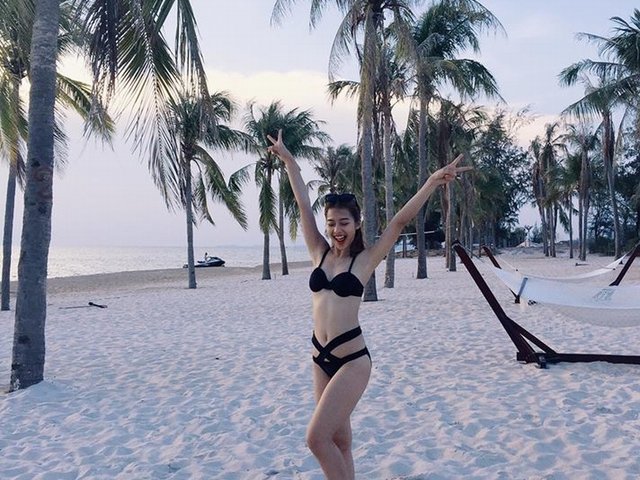 Người đẹp gốc Điện Biên vừa khoe những tấm ảnh diện bikini nóng bỏng trong chuyến nghỉ dưỡng cùng con trai để tránh cái nóng Hà Nội.