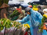Khắp phố phường tràn ngập sắc cờ đỏ, rực rỡ màu hoa.
