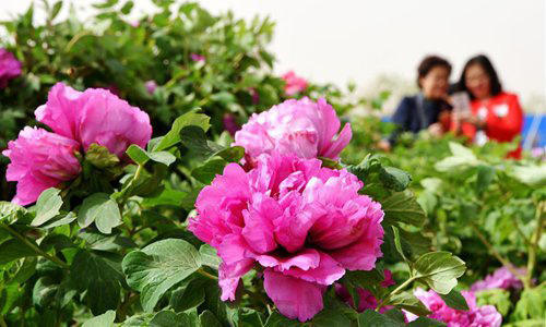 Hoa mẫu đơn trong Công viên sông Hoàng Hà, Khu tự trị Nội Mông, Trung Quốc ngày 29/4/2018. Ảnh: Xinhua. |