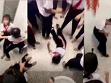 Trong clip, nữ sinh bị ép sát vào góc tường, liên tục bị nhóm bạn tra hỏi, chỉ tay vào mặt rồi đánh tới tấp. Nhóm này quăng quật nạn nhân xuống nền, dùng chân đá vào mặt, túm tóc kéo lê.