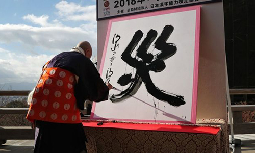 BBC đưa tin lễ công bố ký tự tượng trưng cho năm 2018 hôm qua được truyền hình trực tiếp tại một ngôi chùa cổ ở thành phố Kyoto và sư trụ trì đã viết ký tự chiến thắng lên một tấm bảng trắng.