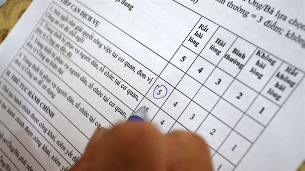 Người dân đến làm thủ tục tại Cục CSGT được phát phiếu đánh giá về chất lượng phục vụ, sự hài lòng với cán bộ, chiến sĩ...