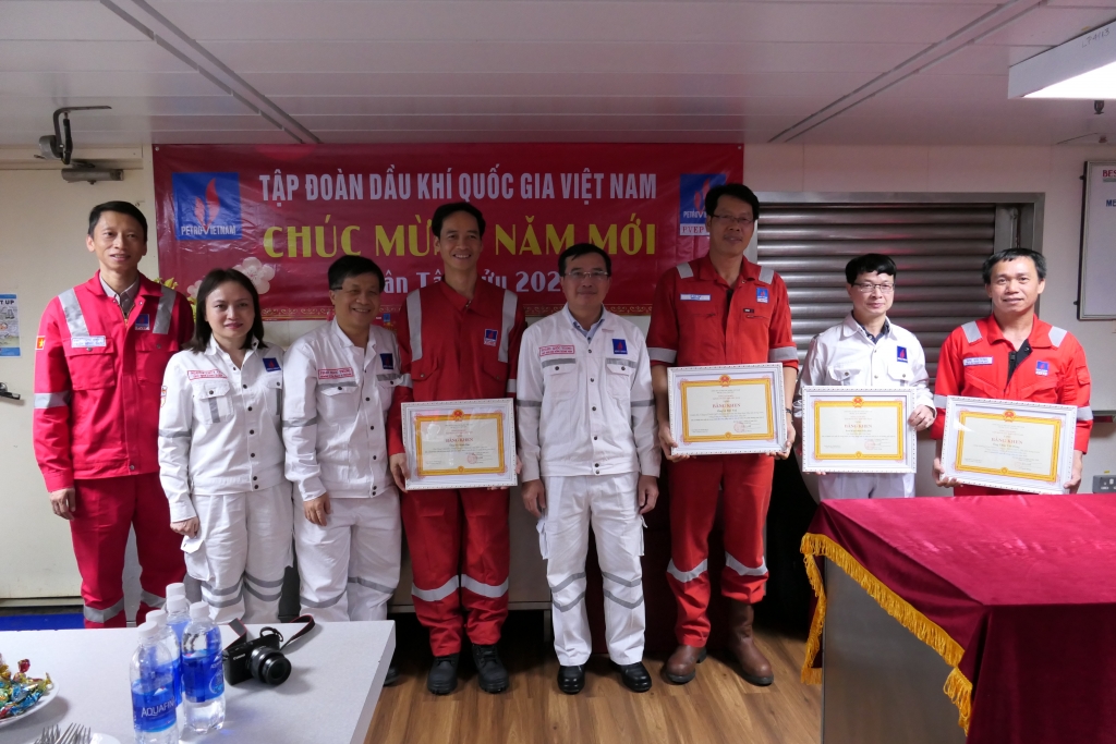 | Chủ tịch HĐTV Hoàng Quốc Vượng mừng tuổi anh em trên giàn Hải Thạch - Mộc Tinh |