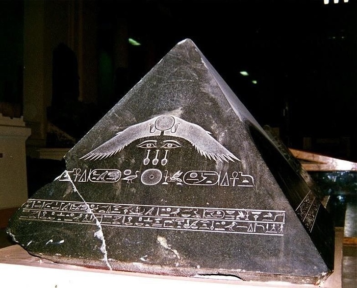 Đây là viên đá Benben (từ khoảng năm 1840 trước công nguyên) được phát hiện trong đền thờ Phượng hoàng. Người Ai Cập cổ đại coi Phượng hoàng là biểu tượng của các mùa theo chu kỳ và tin rằng nó có khả năng sinh ra và hồi sinh. Theo các nhà khoa học, Benben nằm trên đỉnh kim tự tháp Amenemhat III. Những chữ khắc trên đá là một lời cầu nguyện yêu cầu pharaoh quay trở lại cuộc sống.