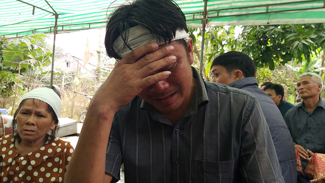 Ngồi sõng soài dưới nền đất cạnh bàn thờ đặt di ảnh con trai, tiếng khóc ai oán của anh Huy càng khiến mọi người quặn thắt lòng: “Con ơi!. Quần áo mới cô mua cho để đón tết con mới mặc được một lần mà sao con nỡ vội đi…”.