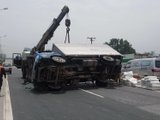 Chiếc xe khách vô tư lấn làn tạo nên khung cảnh giao thông lộn xộn trên cầu Thanh Trì.