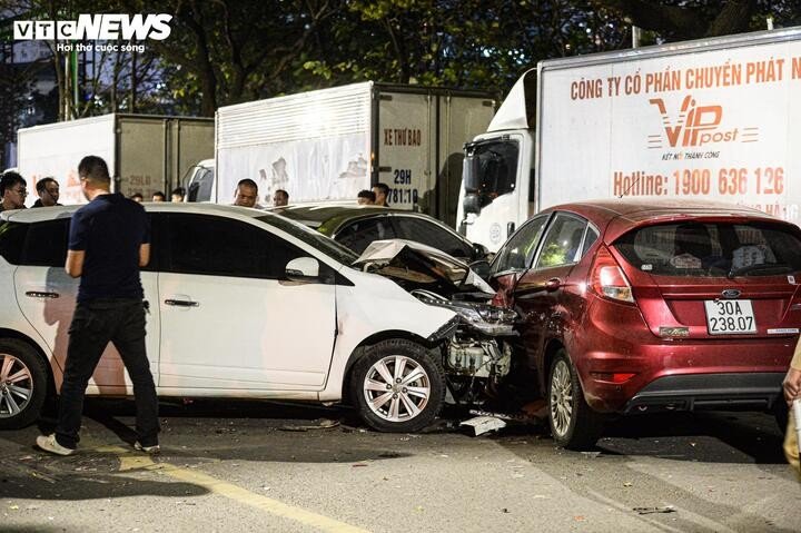Khoảnh khắc ô tô gây tai nạn liên hoàn trên phố Hà Nội giờ cao điểm.