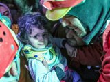 Phía bên kia biên giới, hãng tin AP ghi lại cảnh một người đàn ông Syria ôm một bé gái đã qua đời trên tay khi anh bước ra khỏi đống đổ nát của một tòa nhà hai tầng bị sập.