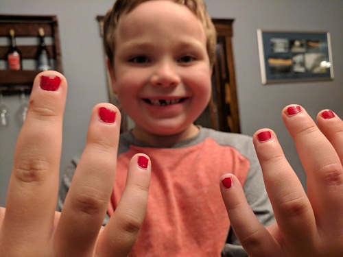 Sau một hồi đắn đo, Sam quyết định giữ bộ móng như cũ. Anh trai Sam, Will (10 tuổi) cũng muốn sơn móng tay để ủng hộ em và thể hiện sự đoàn kết. "Lúc đó tôi đã suýt khóc", Gouveia nhớ lại.