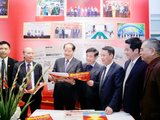 Trưởng Ban Tuyên giáo và Dân vận Trung ương Nguyễn Trọng Nghĩa và các đại biểu thăm gian trưng bày của Đài Tiếng nói Việt Nam tại Hội Báo toàn quốc 2025.