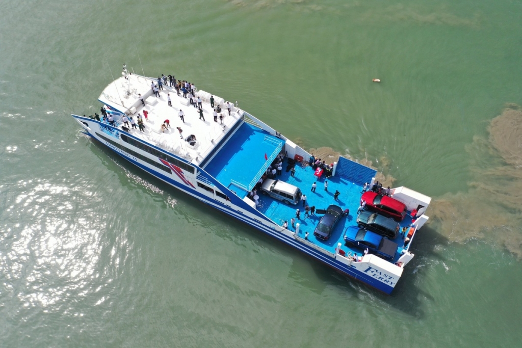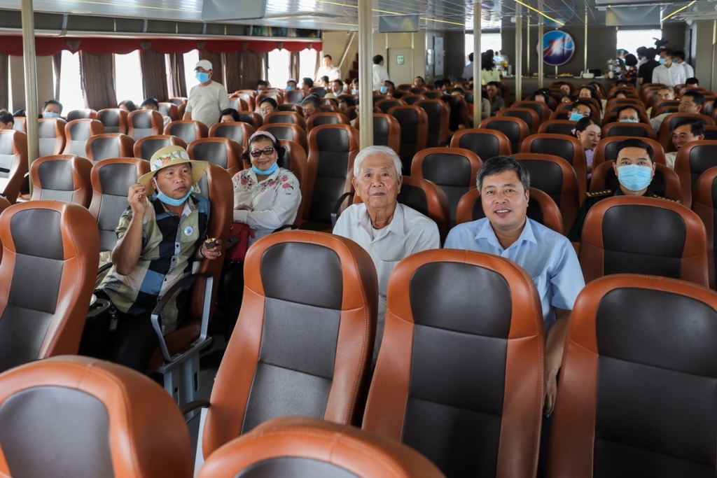 | Bên trong hai tầng của khoang phà khá rộng rãi, được lắp máy lạnh, hệ thống báo cháy... đầy đủ. Khoang với 330 chỗ nhưng chở tối đa 190 người. Chuyến phà đầu tiên có gần 100 khách tham gia trải nghiệm. |