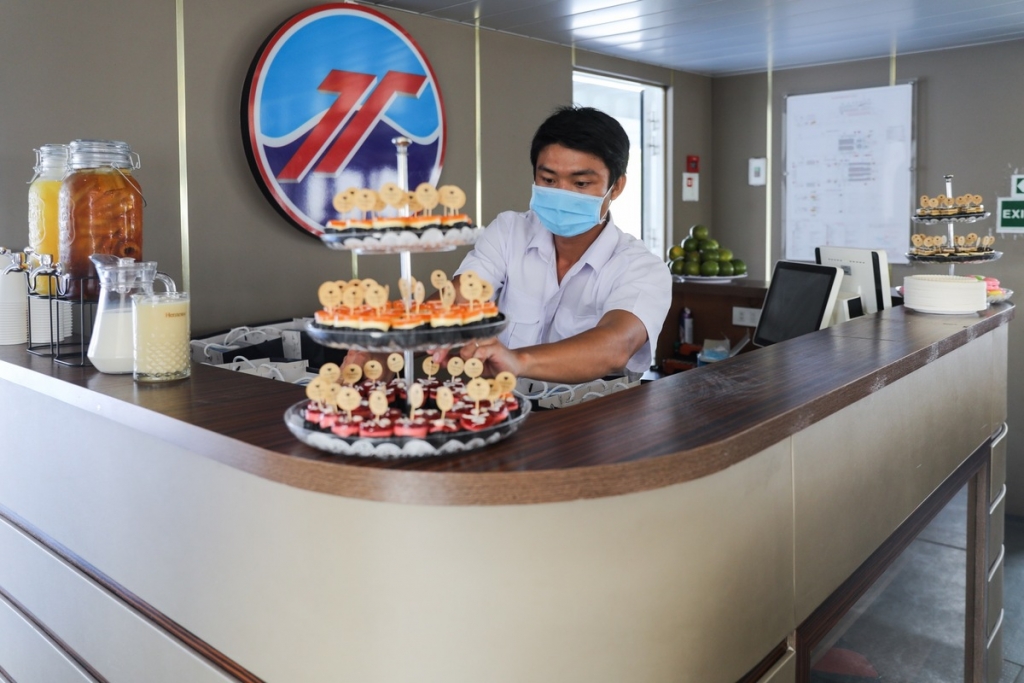 | Ở tầng một có quầy bar phục vụ nước uống, thức ăn cho hành khách. |