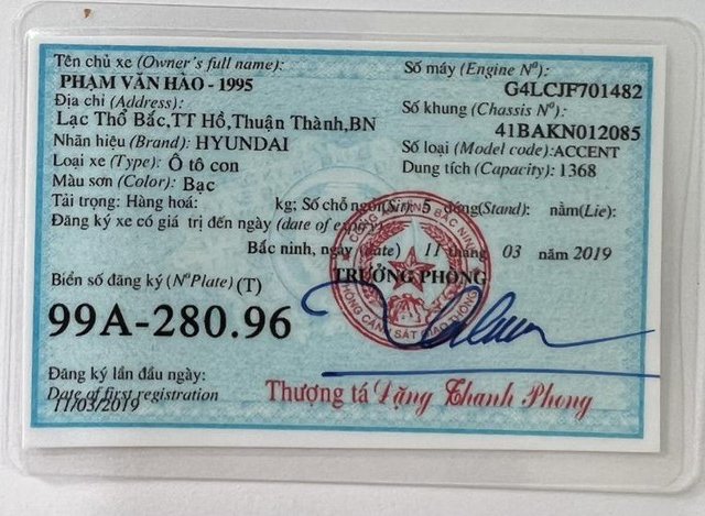 Phan Duy Trung khai do bị mất giấy tờ nên đã lên mạng đặt làm giả giấy chứng nhận đăng ký xe ô tô để mang lên làm việc tại Phòng CSGT Công an tỉnh Bắc Ninh.