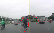 Clip ghi cảnh để đánh lái gấp để tránh chiếc xe đạp đi giữa đường, xe tải tông trúng 2 thanh niên đang lái xe máy bốc đầu trên phố Hà Nội.