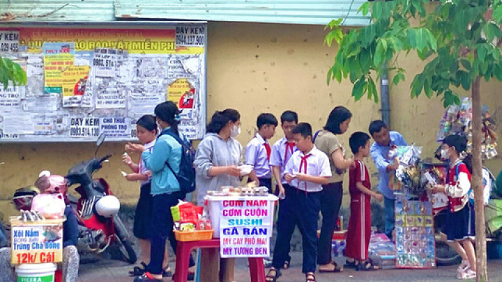 Ngoài ra, các bậc phụ huynh cũng không nên cho con ăn các loại thực phẩm không rõ nguồn gốc hoặc giá rẻ, kém chất lượng... được bày bán ở cổng trường.