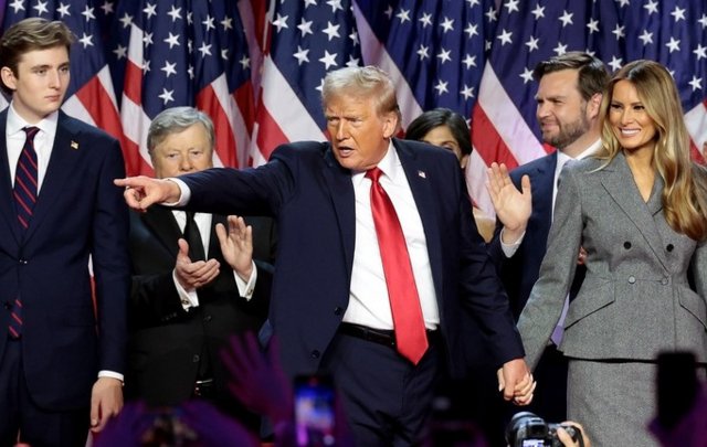 Ông Trump lên sân khấu cùng gia đình, tuyên bố chiến thắng