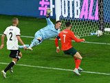 Phút 45, xuất phát từ nhịp chạm bóng làm tường không tốt của Ronaldo, Tây Ban Nha tổ chức phản công nhanh. Pedri chọc khe để Mikel Oyarzabal dứt diểm tinh tế đưa Tây Banr Nha vươn lên dẫn trước khi hiệp 1 kết thúc.