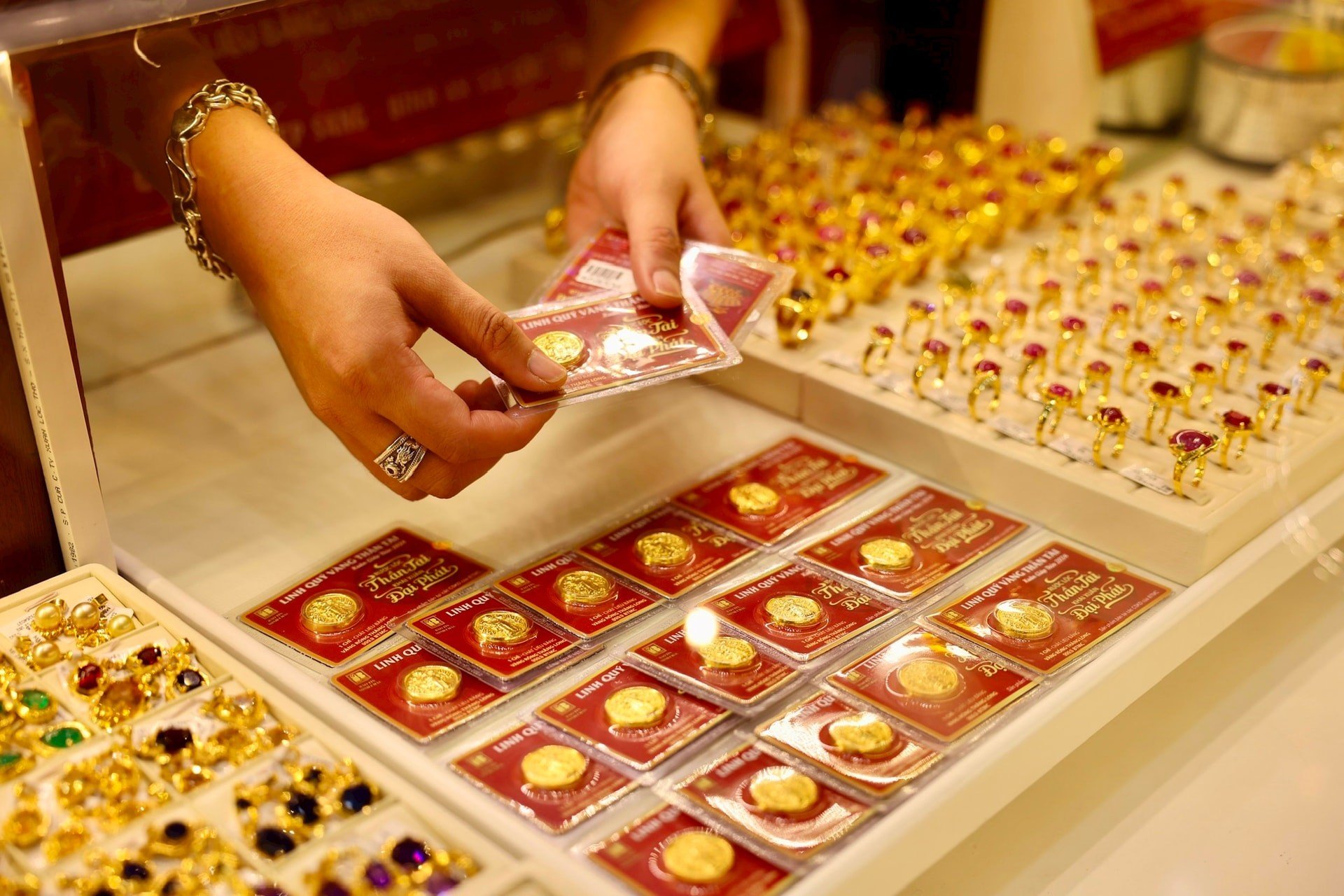 Hôm qua, lúc đầu giá vàng giữ nguyên nhưng sau đó tăng 500.000 đồng/lượng.