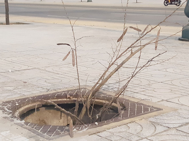 Tuy nhiên, theo quan sát của chúng tôi, còn một số vị trí nắp cống bị mất vẫn chưa được cảnh báo, tạo thành những cái “bẫy” lộ thiên sâu hoắm ngay trên vỉa hè.