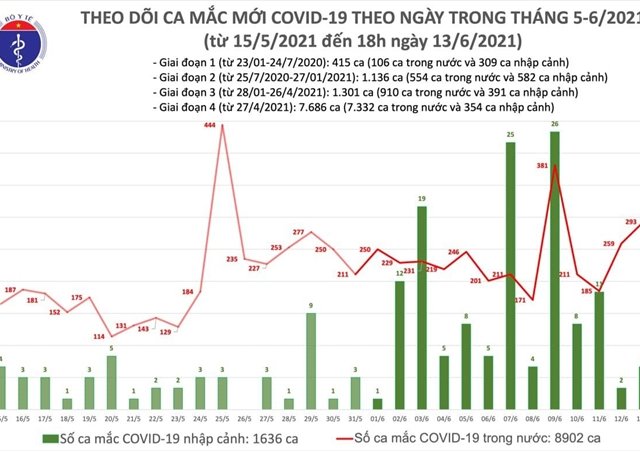 Trưa 9/6, theo thống kê của Bộ Y tế, Việt Nam thêm 283 người mắc COVID-19 ghi nhận trong nước.
