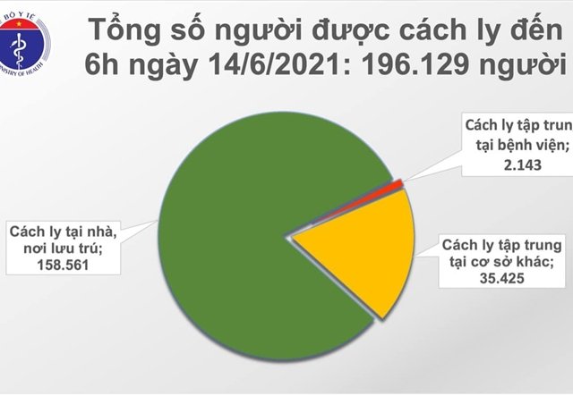 Sáng 14/6, theo thống kê của Bộ Y tế, Việt Nam có thêm 92 người mắc COVID-19, trong đó 1 ca được cách ly ngay, 91 trường hợp ghi nhận trong nước.