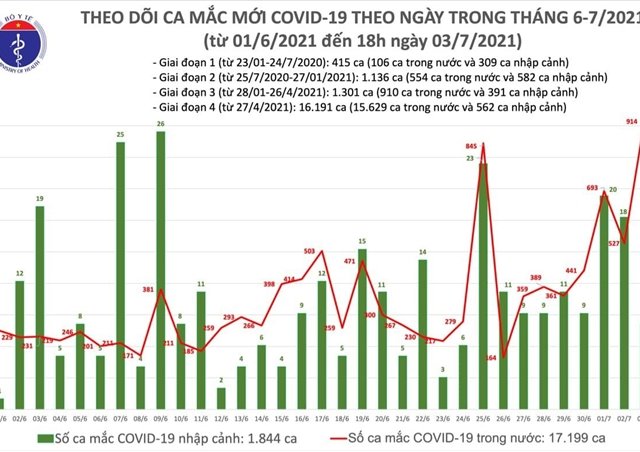 Chiều 3/7, theo thống kê của Bộ Y tế, Việt Nam có thêm 353 ca COVID-19, trong đó 346 bệnh nhân ghi nhận trong nước.