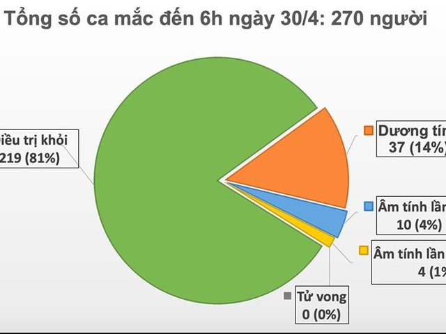 Hiện Việt Nam ghi nhận 270 ca mắc COVID-19, trong đó 255 ca đã công bố khỏi bệnh. Tính từ ngày 16.4 đến nay, Việt Nam không ghi nhận ca mắc mới do lây nhiễm trong cộng đồng. Tuy nhiên, có 5 ca dương tính trở lại với SARS-CoV-2.