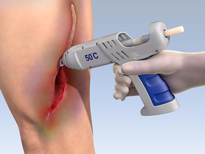 | Súng bắn keo đông cứng vết thương giúp bệnh nhân giảm đau đớn và tránh nhiễm trùng. Ảnh: Technion |