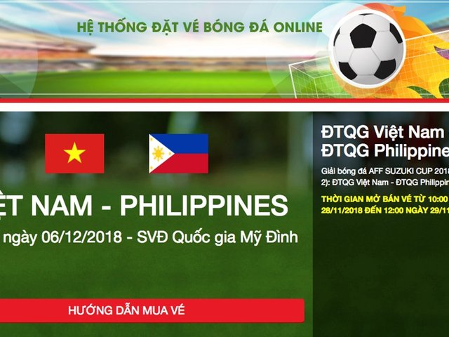 Vào lúc 10h sáng nay (28.11), Liên đoàn Bóng đá Việt Nam (VFF) sẽ chính thức mở hệ thống bán vé online trận Việt Nam -Philippines .