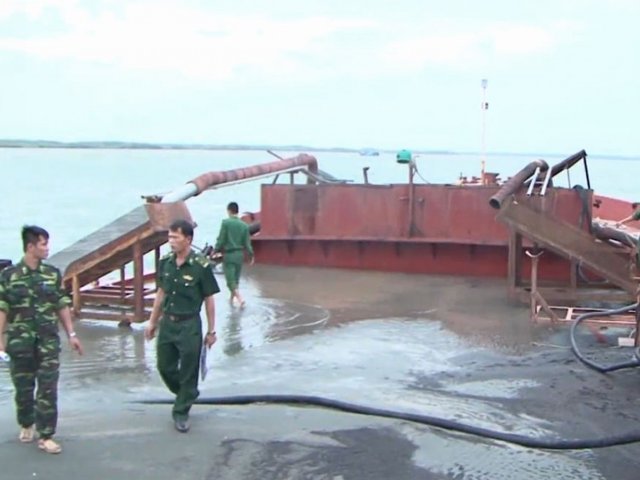 Ngày 29/11, Bộ đội Biên phòng TP HCM bắt quả tang ba sà lan đang bơm hút cát trái phép trên vùng biển Cần Giờ.