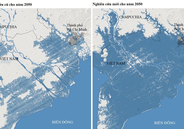 Miền nam Việt Nam, trong đó có TP HCM, với dân số 20 triệu người có thể bị ngập trong nước biển vào 2050, theo nghiên cứu của Climate Central.