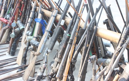 330 súng tự chế và súng kíp, 200 súng bắn hơi cồn vào hôm nay đã bị công an phá hủy.