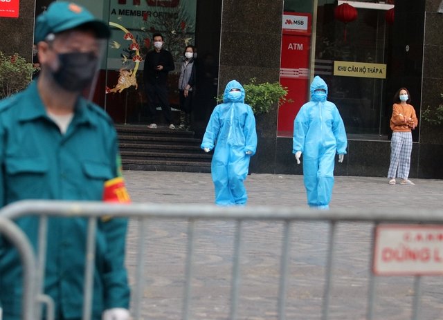 Nhà chức trách phong tỏa tạm thời chung cư 88 Láng Hạ để kiểm soát tình hình sau khi ở đây có ca dương tính nCoV.