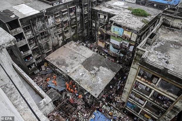 Ngày 21/9, ít nhất 13 người thiệt mạng và khoảng 25 người vẫn đang mắc kẹt trong đống đổ nát sau khi một tòa nhà 3 tầng đổ sập tại miền Tây Ấn Độ.