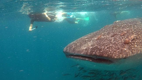 Khi Vanessa Brown trồi lên sau chuyến lặn biển, cô thấy thuyền trưởng hét lên, chỉ tay về phía con cá mập voi bơi cách đó không xa.
