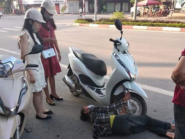 Mạng xã hội ngày cuối tuần chia sẻ tình cảnh dở khóc dở cười của hai cô gái khi “đang dừng xe bên đường để đợi nhau thì bỗng nhiên có một người phụ nữ lao ra ôm bánh xe máy kêu tai nạn rồi bắt đền”.