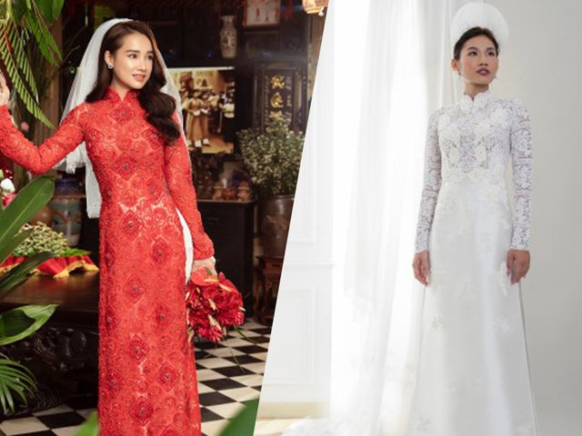 Áo dài ren gọn gàng hoặc được cách tân theo phom váy cưới đang dần trở thành lựa chọn phổ biến của cô dâu.