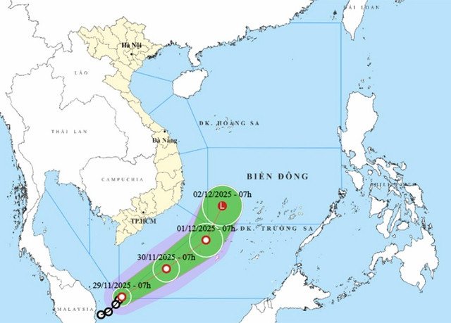 Áp thấp nhiệt đới được chuyên gia nhận định là rất hiếm, hoặc có thể nói là chưa từng xuất hiện, sáng nay di chuyển vào Biển Đông.