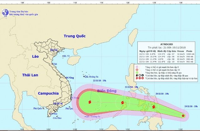 Dự báo trong 24 giờ tới, áp thấp nhiệt đới di chuyển theo hướng Tây Tây Bắc, mỗi giờ đi được khoảng 25km và sẽ mạnh lên thành bão, sau đó đi vào Biển Đông.