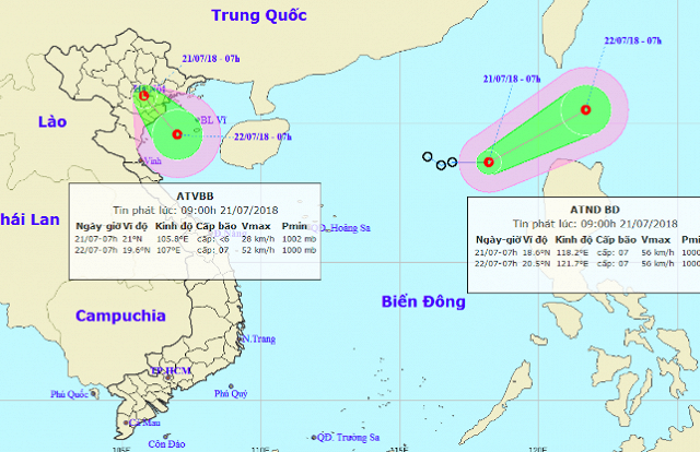 Trung tâm Dự báo Khí tượng Thủy văn Quốc gia vừa phát đi thông tin về một áp thấp nhiệt đới xuất hiện trên Biển Đông, đồng thời cảnh báo khả năng xuất hiện thêm một áp thấp nhiệt đới khác.