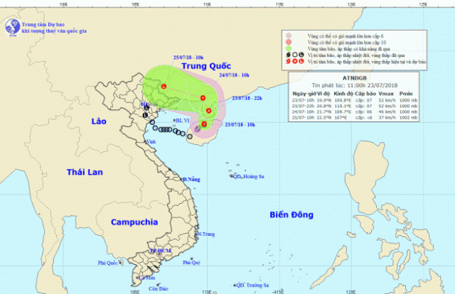 Ngày 16.7, vùng áp thấp trên vịnh Bắc bộ đã mạnh lên thành áp thấp nhiệt đới, dự báo gây mưa lớn từ Thanh Hóa đến Quảng Trị.